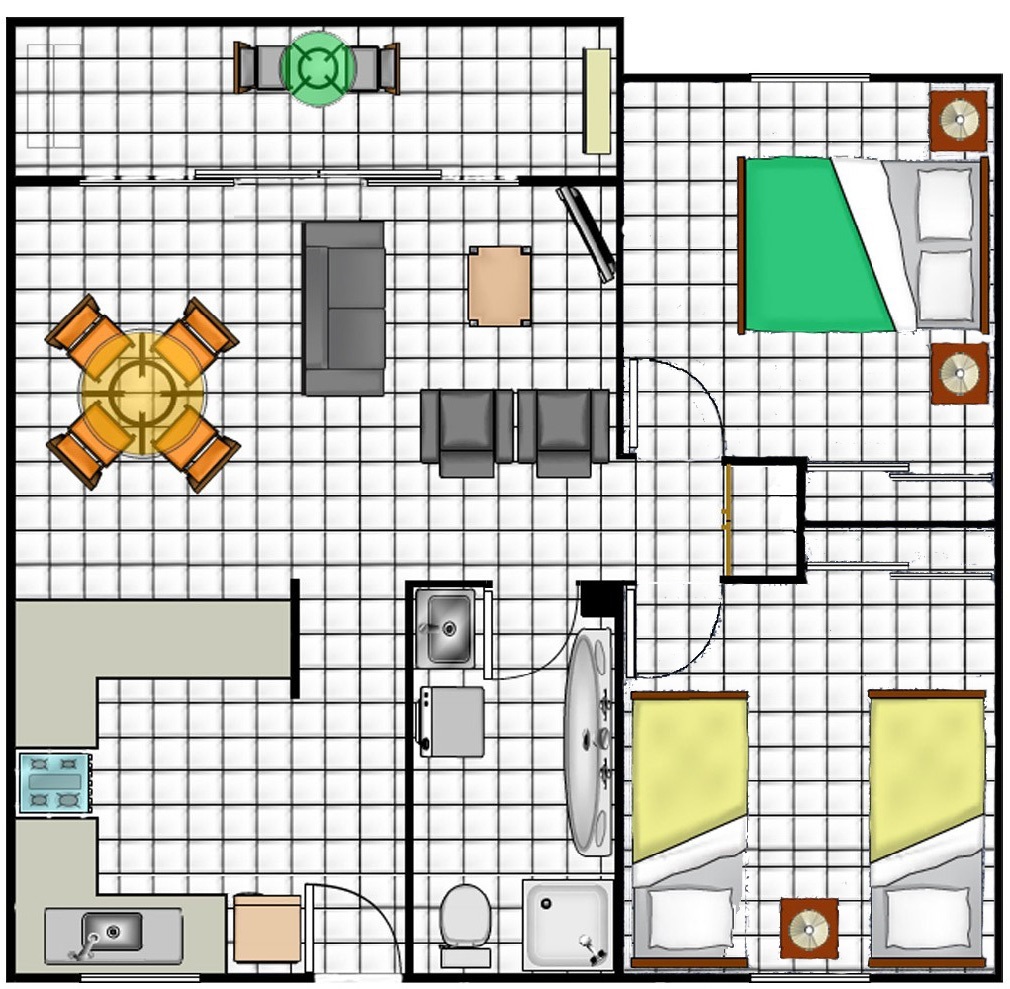 First floor 2 bedroom Fully Furnished apartment with tiled bedrooms and tiled living areas for rent on a 6 month lease in a resort hotel.