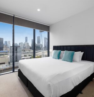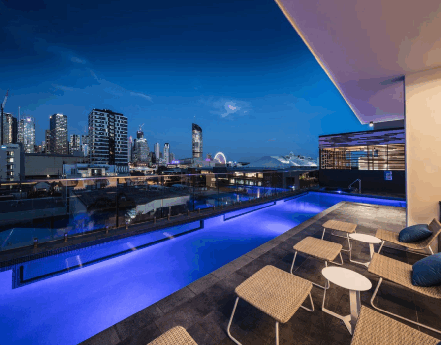 The complex has all the facilities you could possibly want in inner city resort style living. Stunning infinity pool with plenty of seating areas, well fit out gyms, multiple BBQ areas, Private dining/pool table room, Teppanyaki bar, Pizza oven, outdoor cinema, very high security, onsite managers, and all well-maintained common areas.