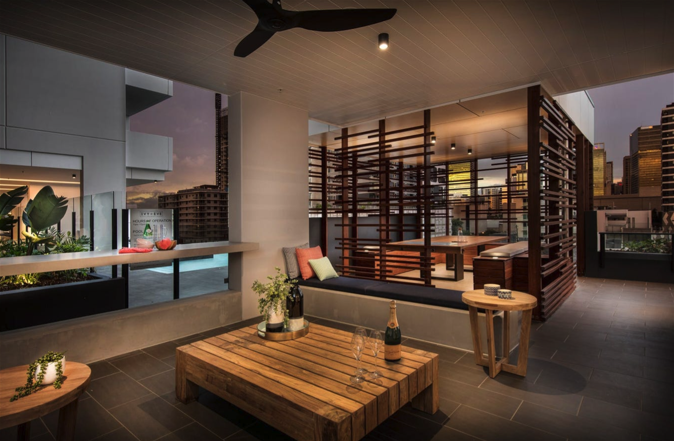 The complex has all the facilities you could possibly want in inner city resort style living. Stunning infinity pool with plenty of seating areas, well fit out gyms, multiple BBQ areas, Private dining/pool table room, Teppanyaki bar, Pizza oven, outdoor cinema, very high security, onsite managers, and all well-maintained common areas.