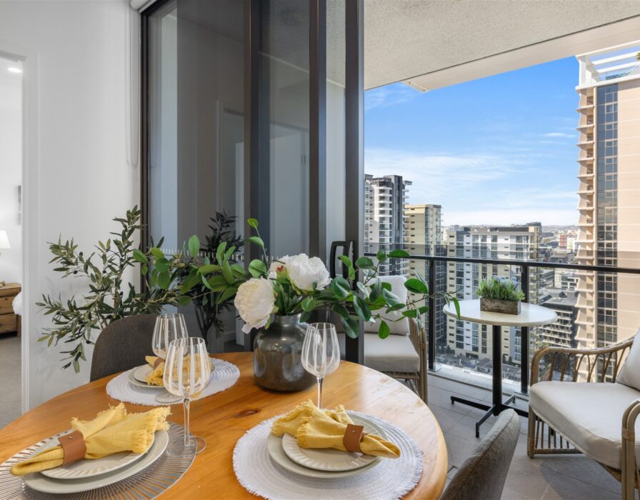 Floor-to-ceiling glass draws you to the generously sized balcony, where youll enjoy panoramic vistas of the Brisbane River, South Bank and the city skyline. Both bedrooms are well-proportioned with plush carpet and built-in robes, while the sleek bathroom is styled with premium finishes and excellent storage.