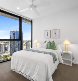 Elevated on Level 26 of Brisbane One, this exceptional apartment combines modern design, stunning river views and a prime inner-city lifestyle. With two full bedrooms and access to highly sought-after school catchments, its perfect for families, professionals or investors.