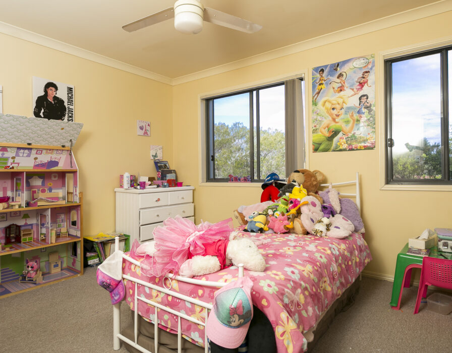 Second bedroom same size as master with built in robe with shelves plus ceiling fan.
