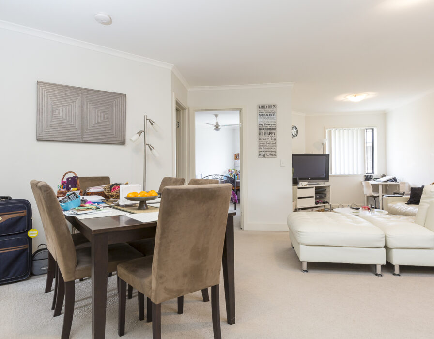 * Carpeted open plan living and dining areas