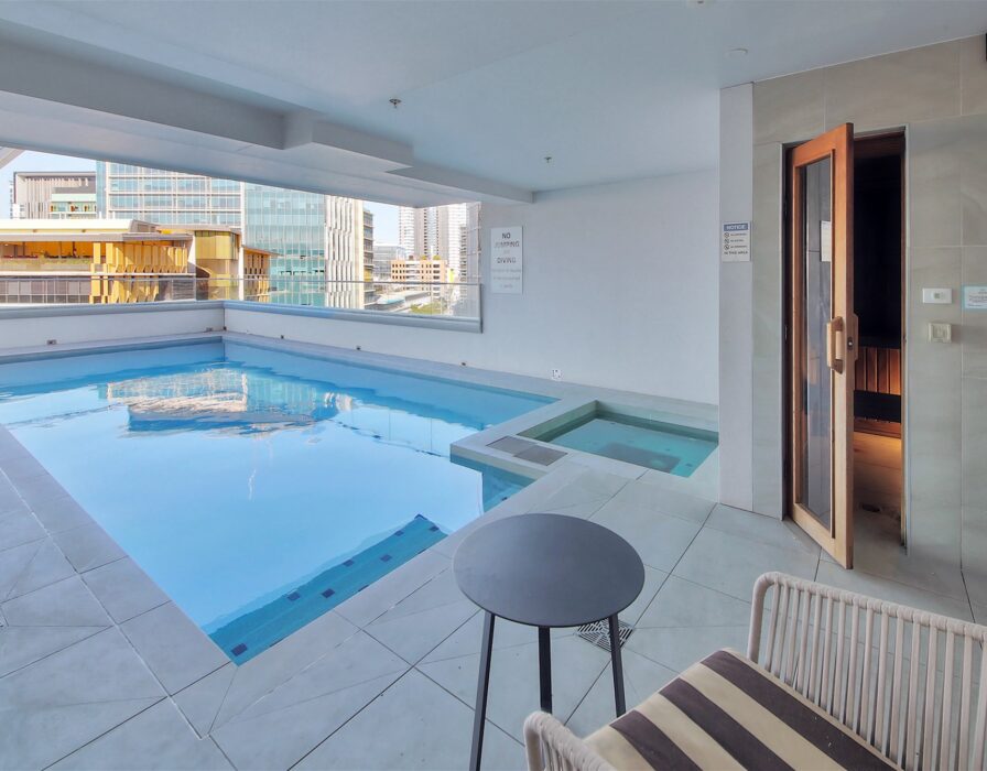 Resort-Style Amenities: Residents have access to the building’s pool, spa, sauna, and gym, as well as a rooftop terrace with 360-degree views of the city.