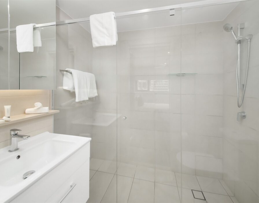 Big double glass sliding doors opening onto the balcony for maximum natural light/aspect. Stylish bathrooms, floor-to-ceiling tiles, a neutral colour scheme, and a large shower in the ensuite.
