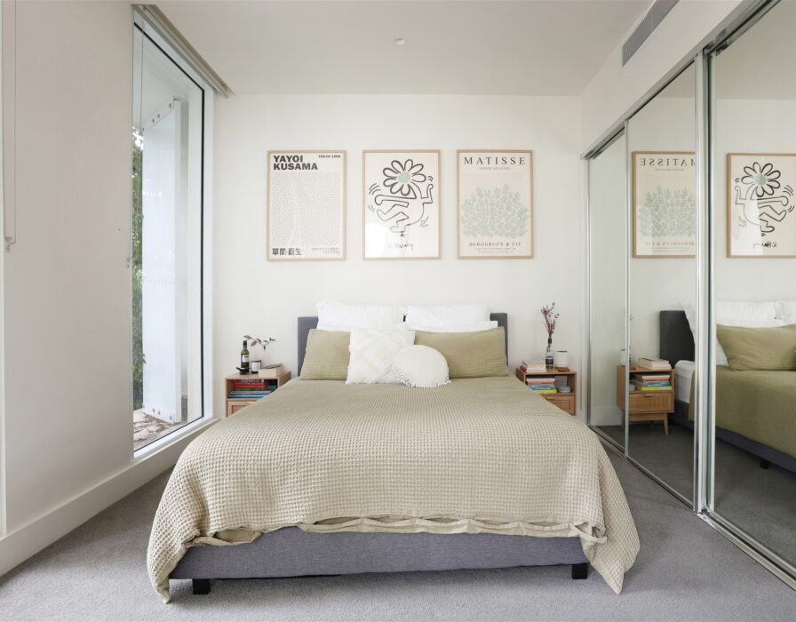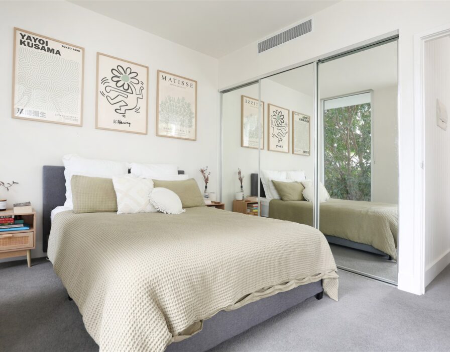 Large bedroom with built-in robe and balcony access