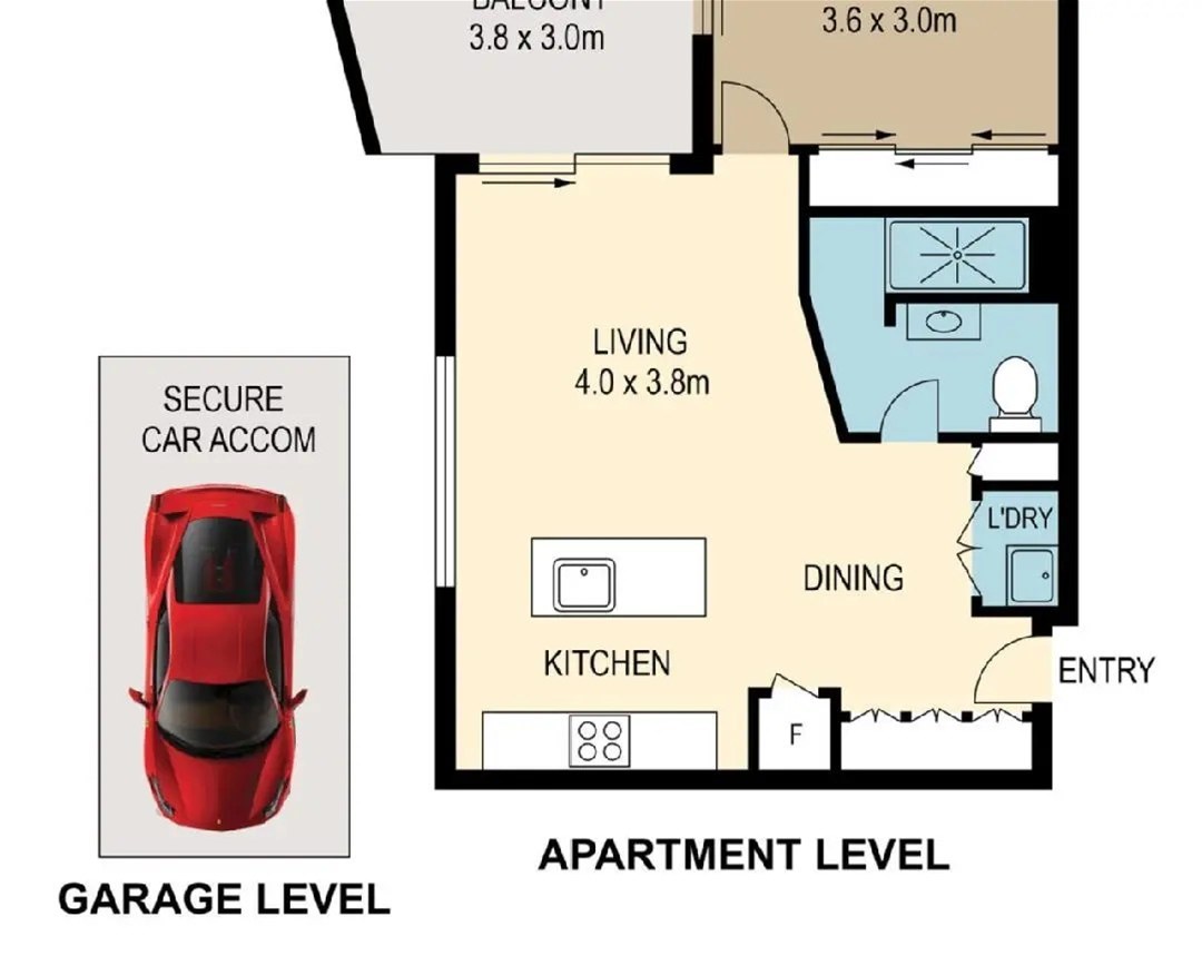 The bedroom is equally generous, with built-in robes and direct access to the balcony, while the sleek, modern bathroom is finished with high-quality fittings and excellent storage. Ducted air conditioning, an internal laundry, and secure building access complete the package.