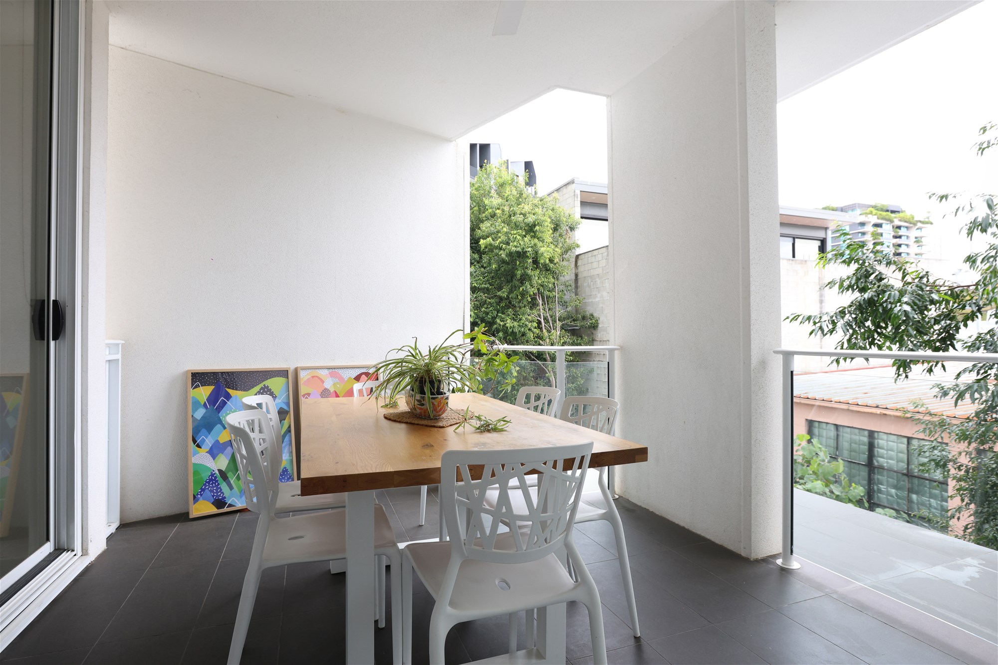 Private entertainers balcony with leafy outlook and excellent privacy