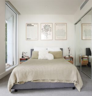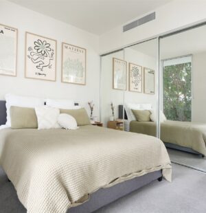 Large bedroom with built-in robe and balcony access