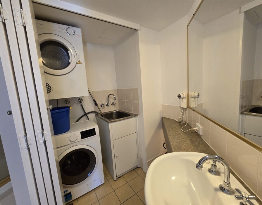 Main bathroom with a laundry