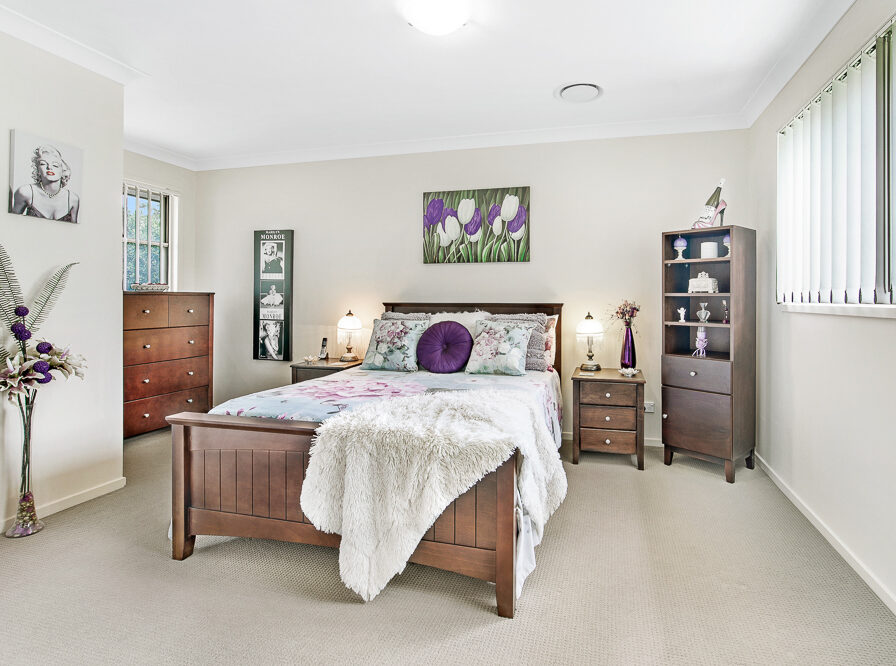* Master bedroom with ensuite and mirrored built-ins.