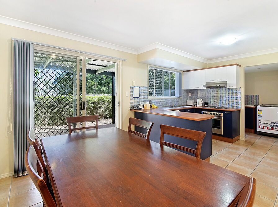 Good size kitchen with breakfast bar overlooking covered rear patio for alfresco dining