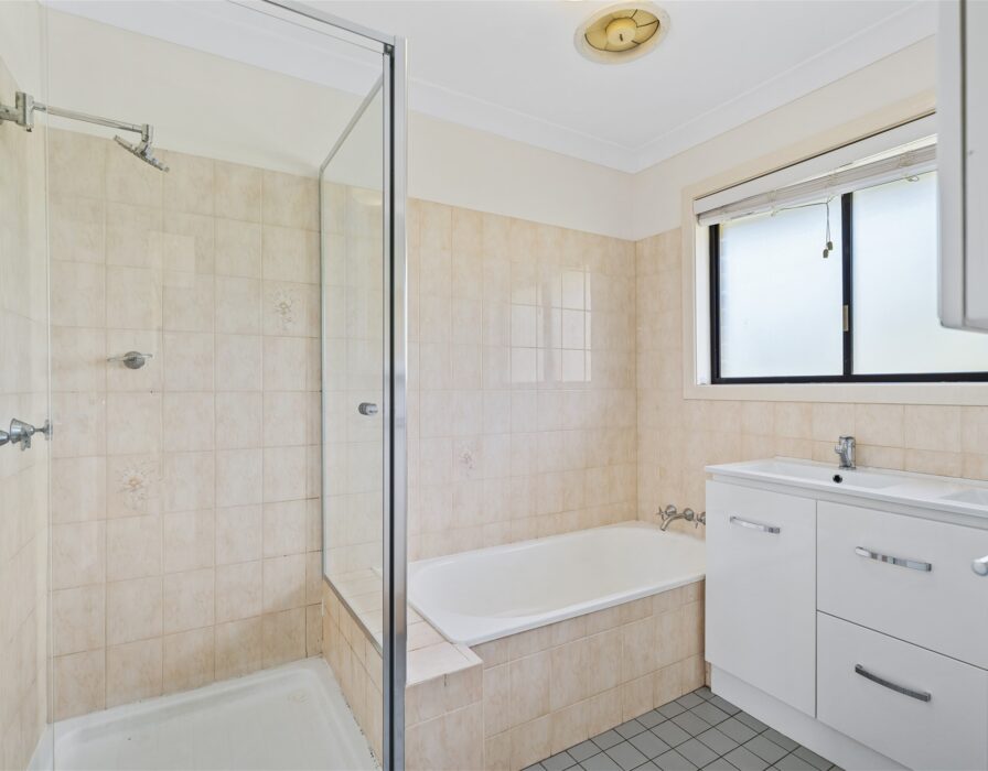 Three bedrooms also feature on this level, two with air conditioning and all with brand-new carpet and built-in wardrobes. The main bathroom services this upper level, complete with dual basin vanity, shower, bath and separate toilet.