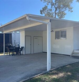 2 cars can be accomodated in the carport, with an additional 2+ on the long driveway. There is also space down the side for a boat or trailer.