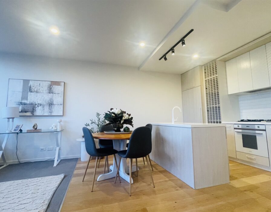 Step inside and enjoy a thoughtfully designed, light-filled layout with sleek finishes throughout. The open-plan living area flows seamlessly to your private balcony, while the elegant kitchen features premium inclusions stone benchtop, Smeg oven, integrated Fisher & Paykel dishwasher and fridge. Timber flooring and designer feature tiles complete the modern, sophisticated vibe.