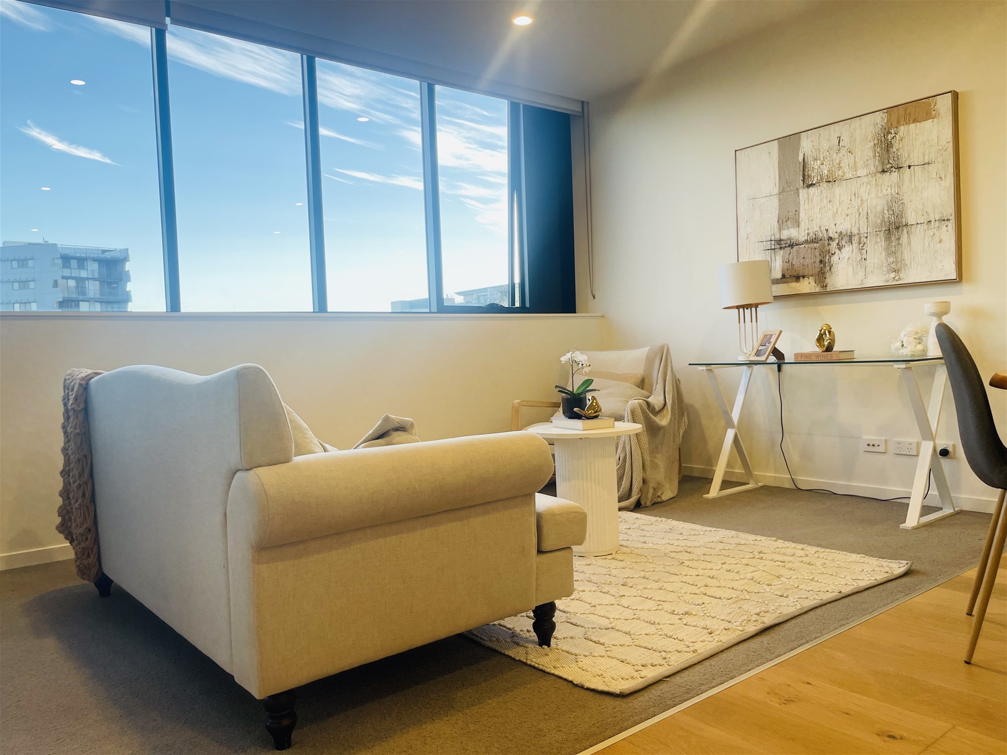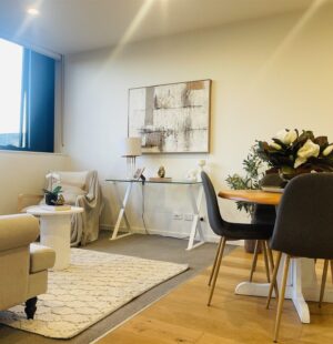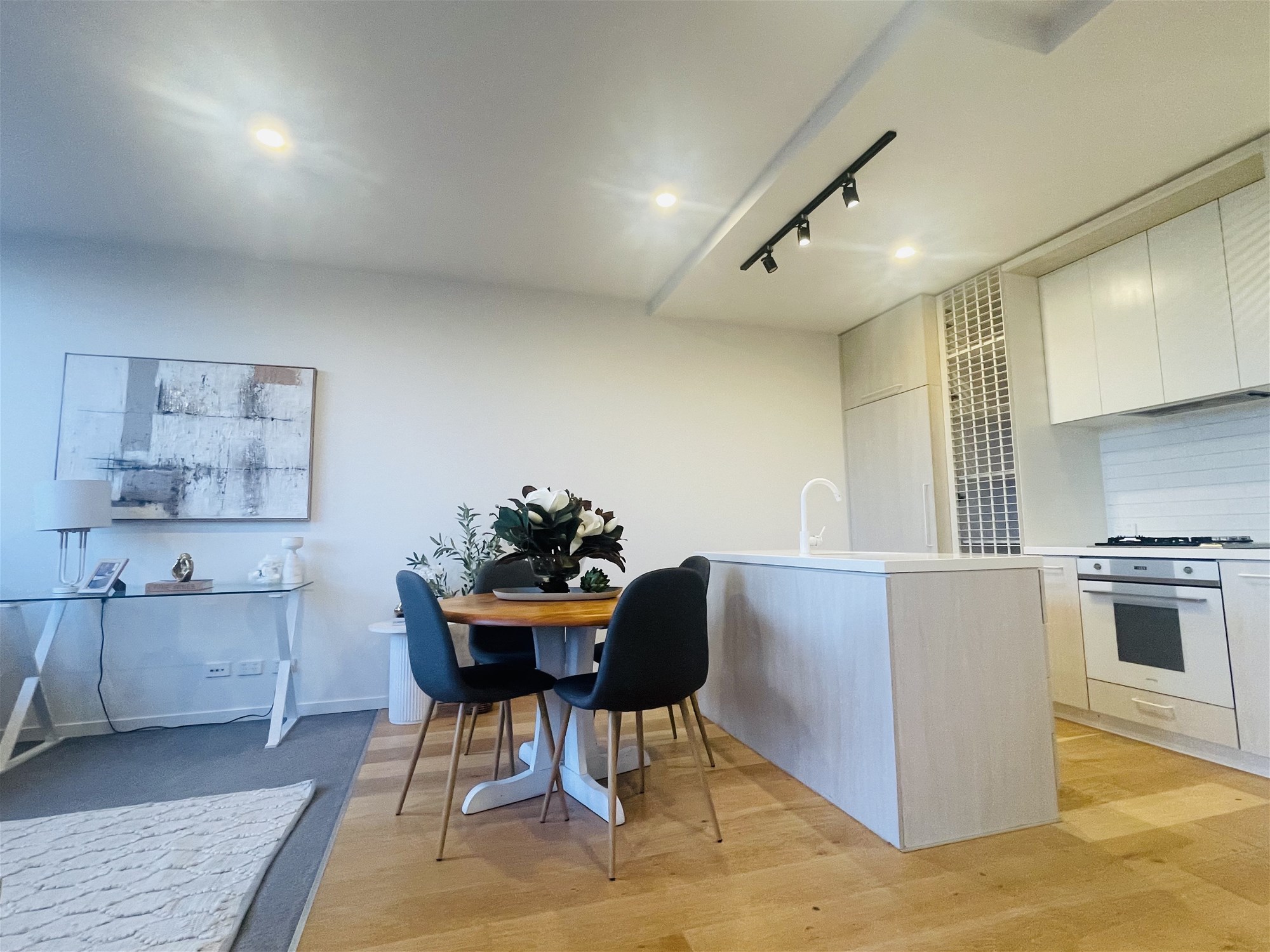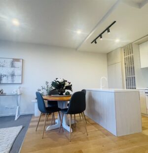 Step inside and enjoy a thoughtfully designed, light-filled layout with sleek finishes throughout. The open-plan living area flows seamlessly to your private balcony, while the elegant kitchen features premium inclusions stone benchtop, Smeg oven, integrated Fisher & Paykel dishwasher and fridge. Timber flooring and designer feature tiles complete the modern, sophisticated vibe.
