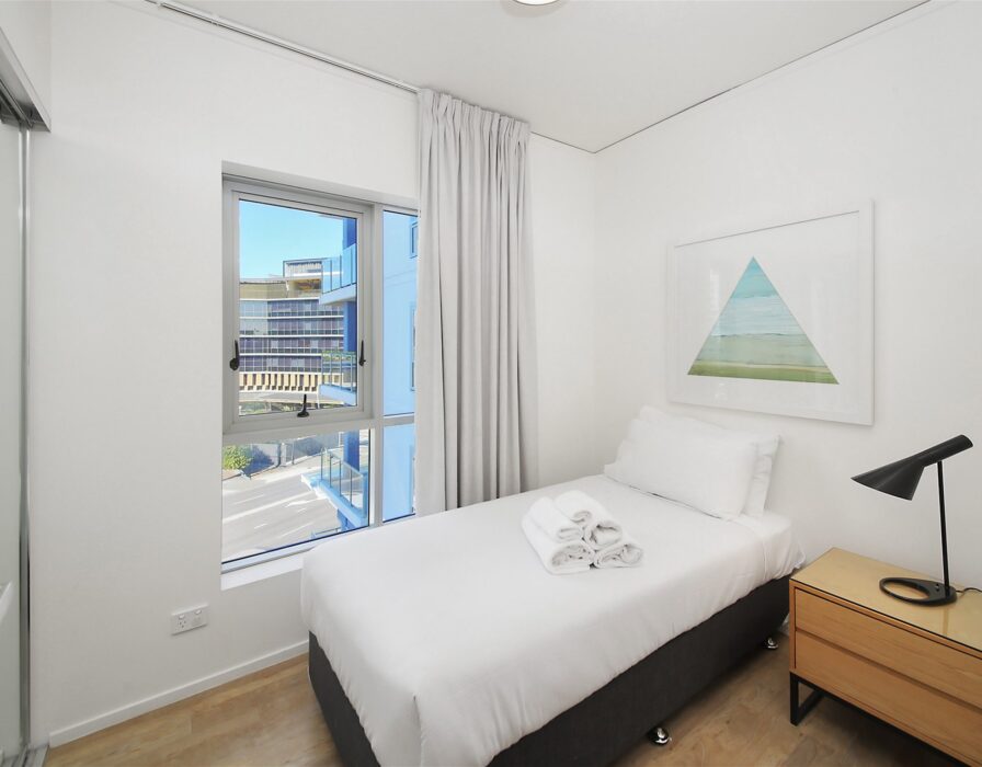 One Bedroom Plus Study: The spacious bedroom features a built-in robe and ducted air conditioning, while the study, complete with a window and built-in robe, can easily function as a second bedroom.