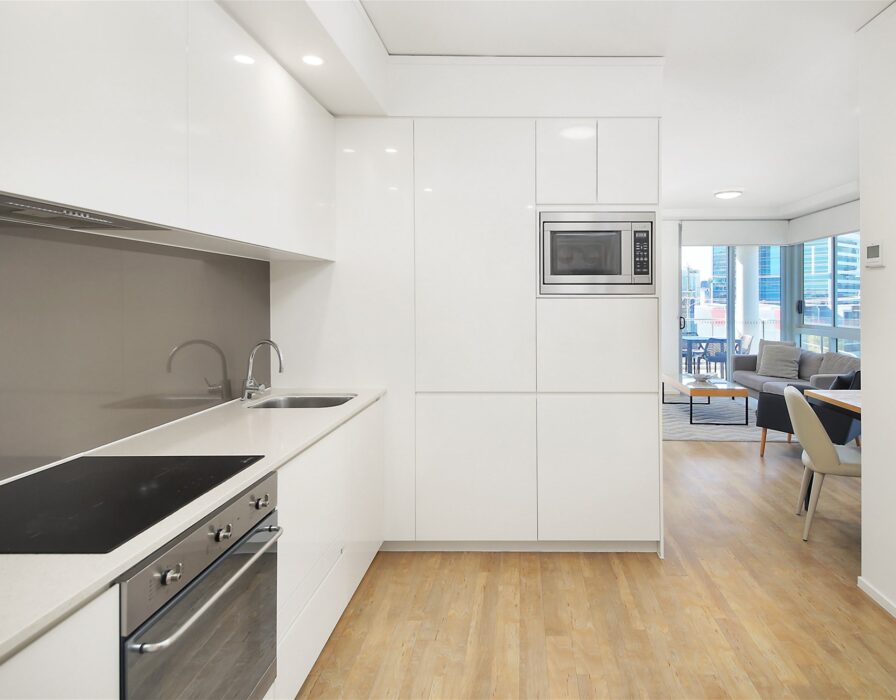 Modern Amenities: The apartment boasts a lavish bathroom finished to the highest standards and a well-appointed kitchen with stone benchtops, SMEG appliances, and ample storage.