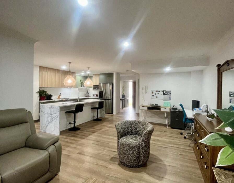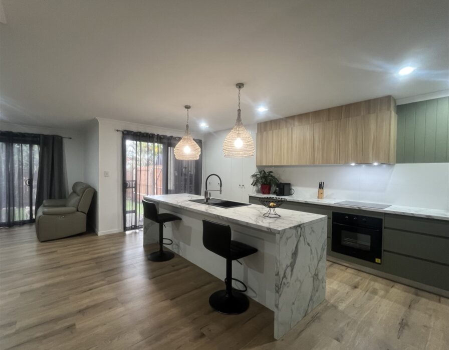 – Fully equipped and reconfigured kitchen with extremely generous storage and entertaining breakfast bar