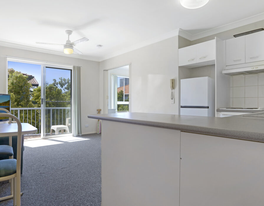 This one-bedroom, one-bathroom furnished unit is located in the quiet and well-maintained complex of ‘Lloyds of Southport’ and offers excellent value. The spacious living and dining area opens onto a private balcony surrounded by lush green plants.