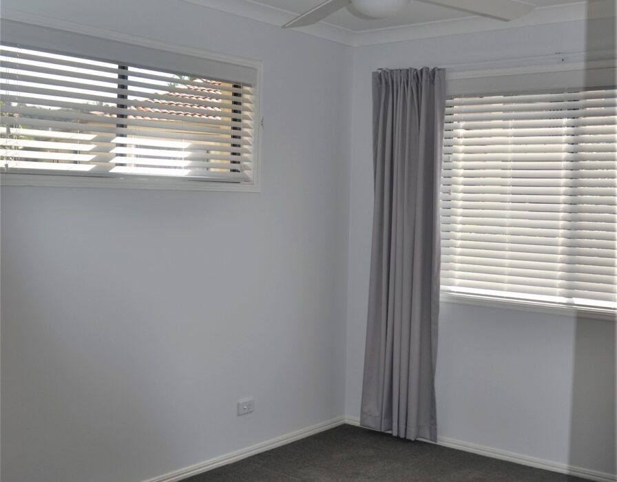 – 2 further bedrooms with built in robes, modern ceiling fans, white timber venetians and grey blockout curtains