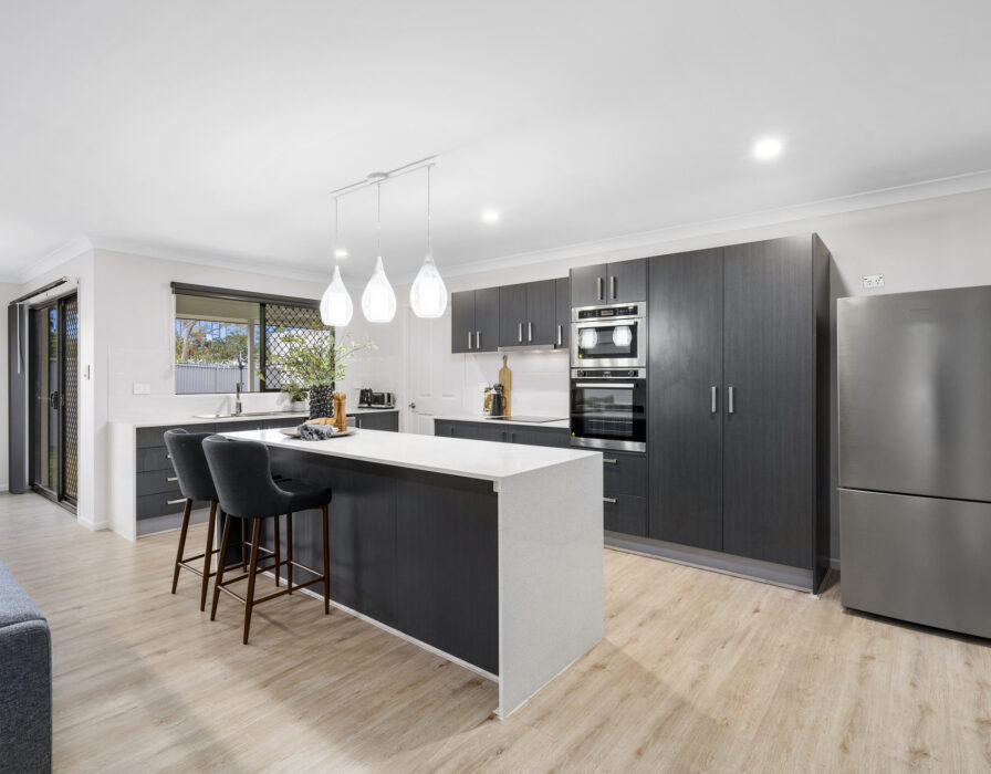 The kitchen is truly the heart of the home and an entertainers’ dream. The kitchen’s trendy white waterfall Caesarstone benchtop and island gives you the sense of luxury while the practicality of a well planned entertaining area. The electric oven and cooktop compliments the finishes, with a dishwasher & built in microwave.
