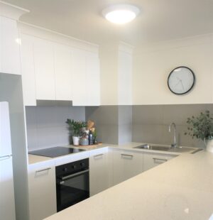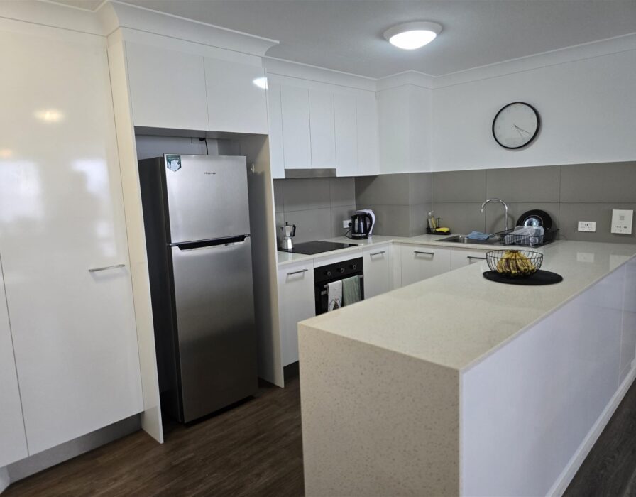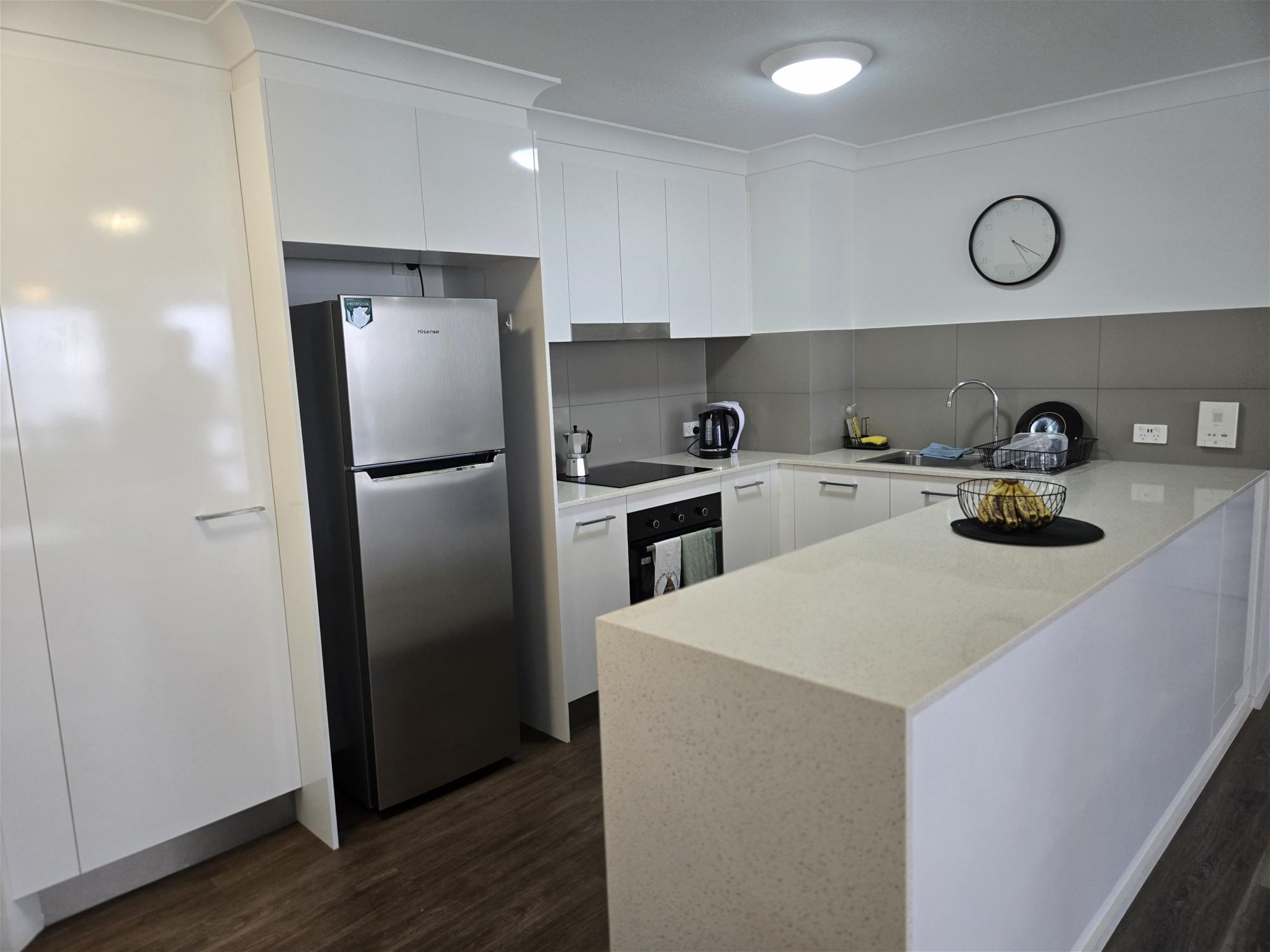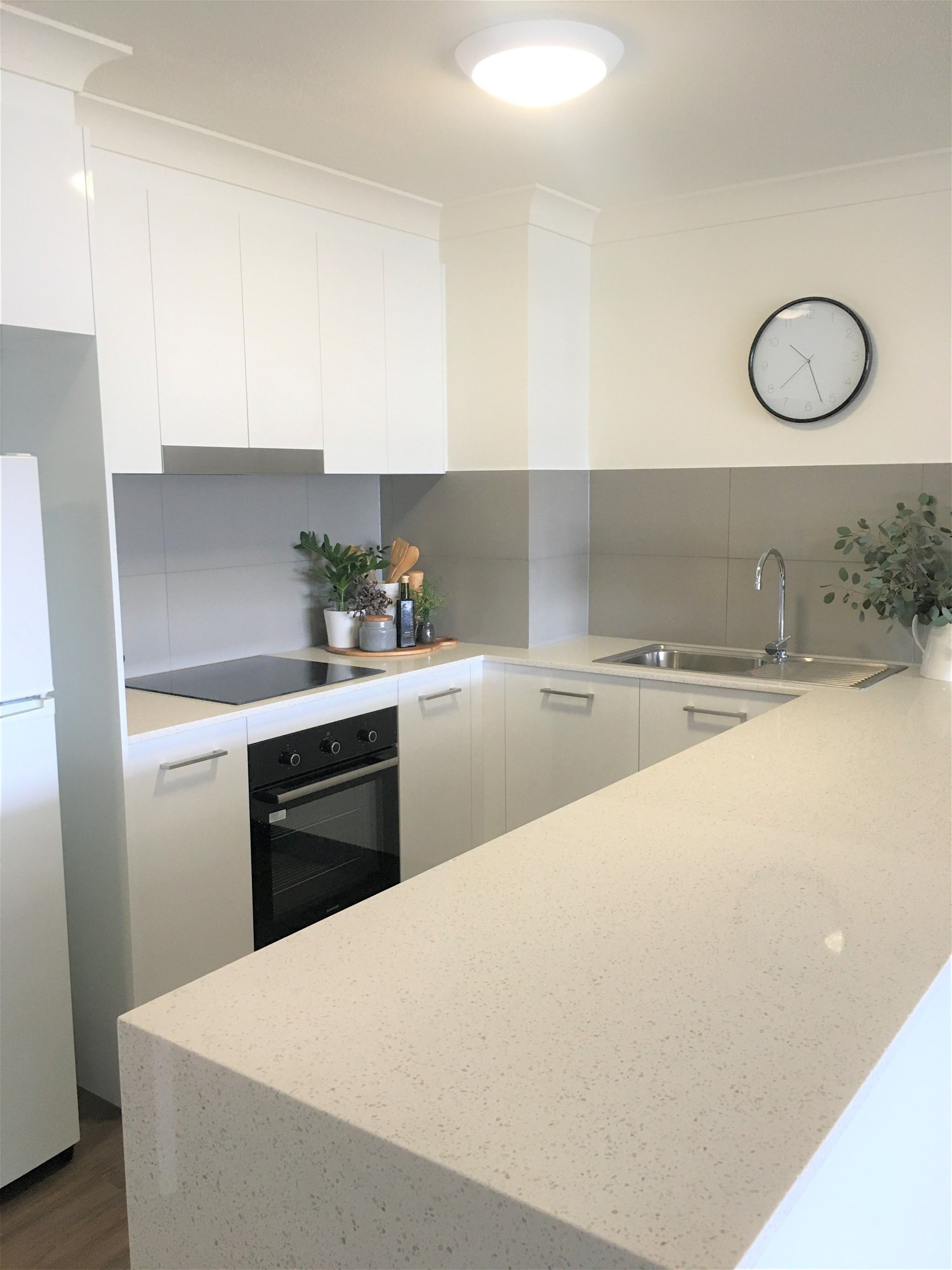 * Modern kitchen with stone bench tops, electric cooking & dishwasher