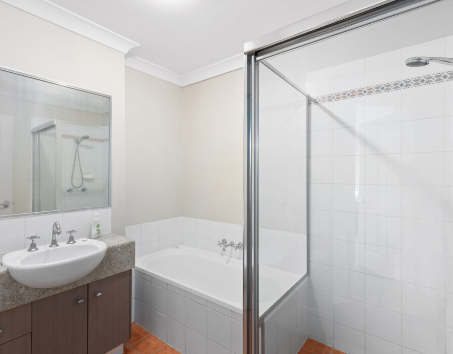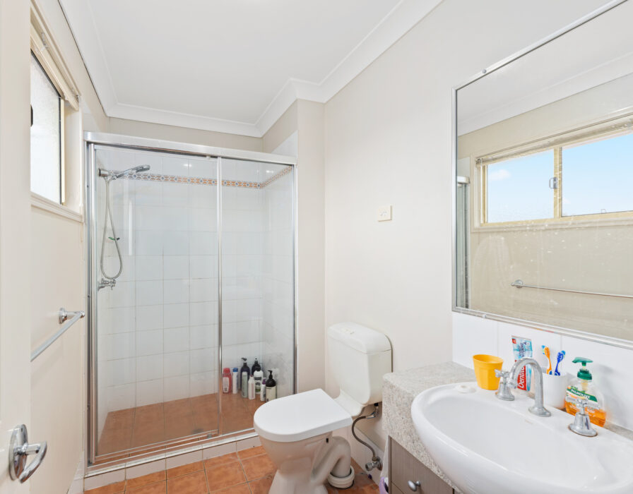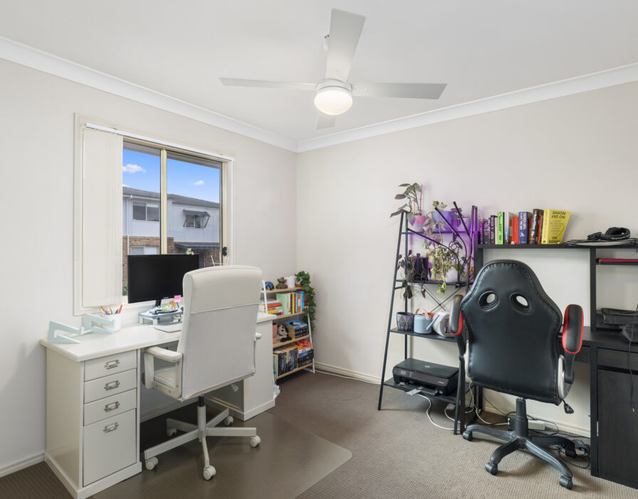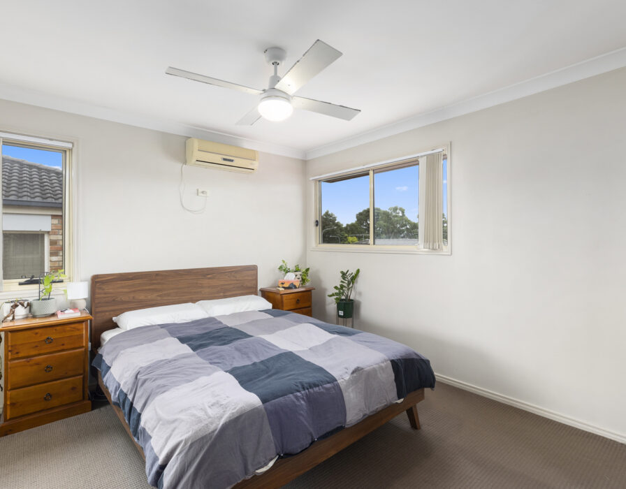 Upstairs has three spacious bedrooms, with ceiling fans and plush carpeting. The master bedroom has an ensuite, walk-in robe and aircon.