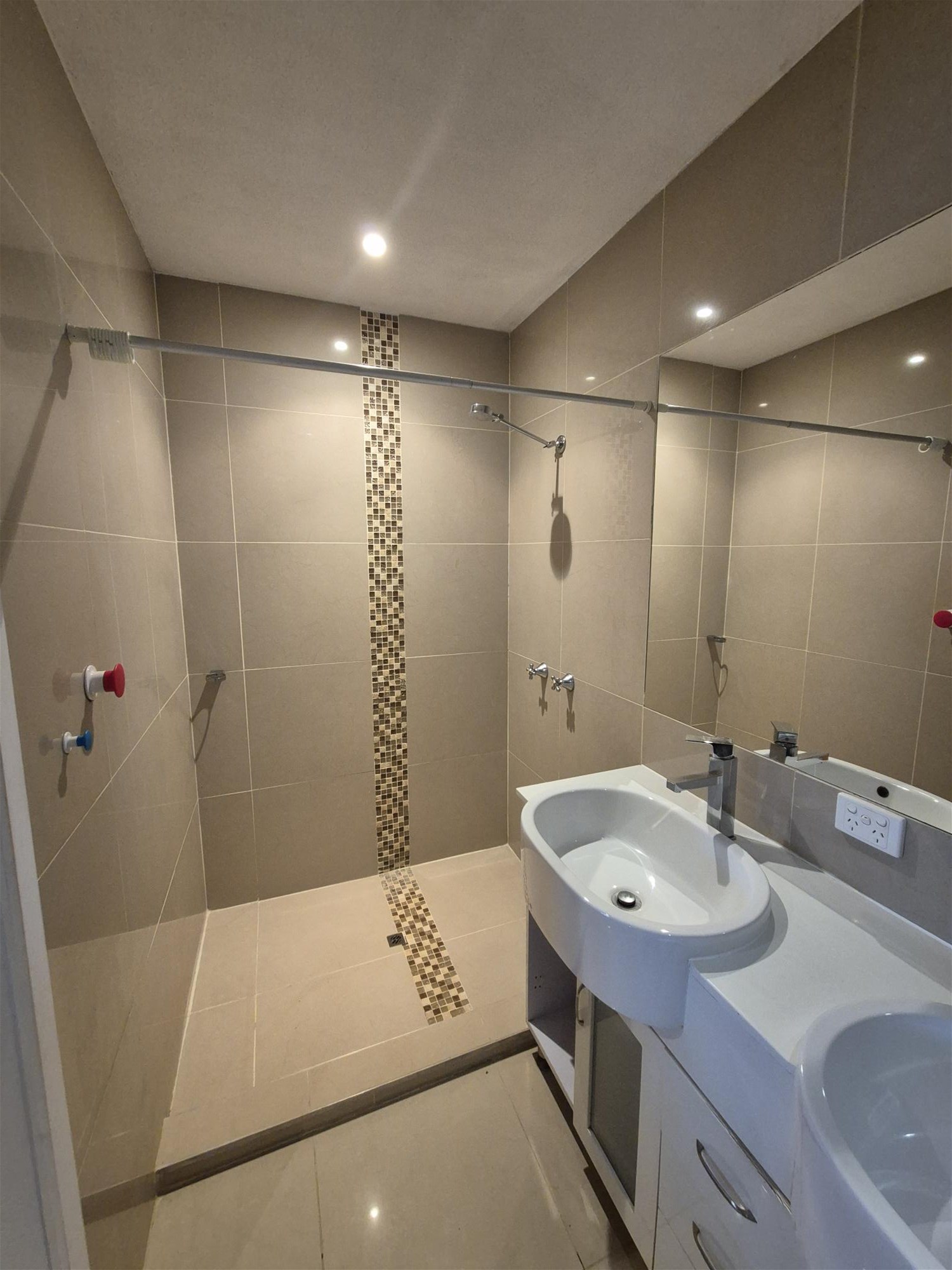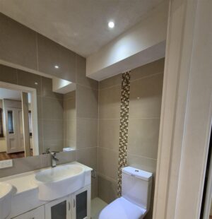 Two stylish bathrooms, main with bathtub