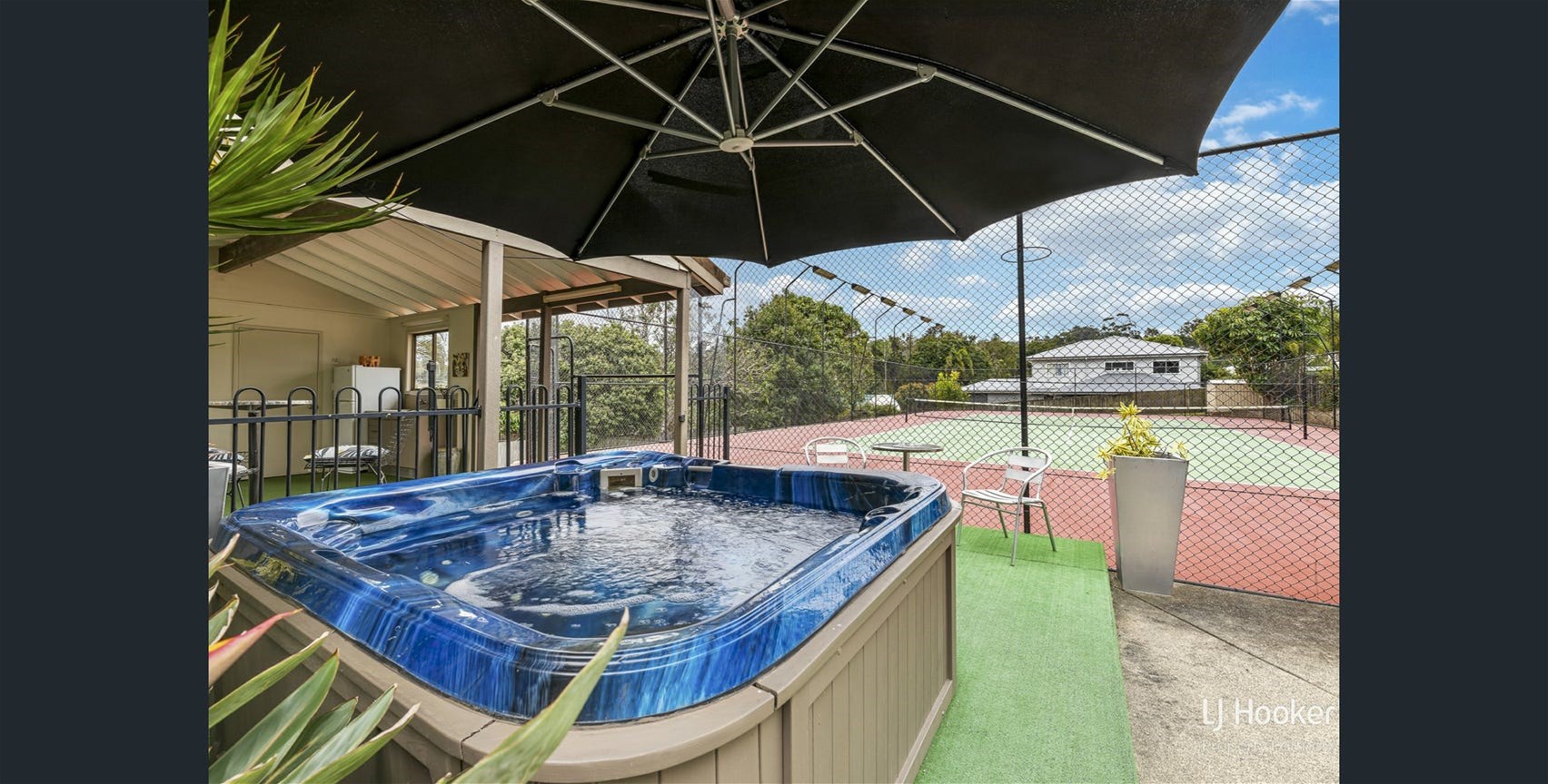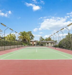 ‍♂ Sparkling swimming pool and full-size tennis court
