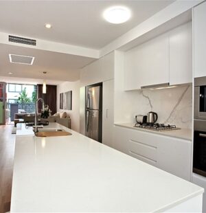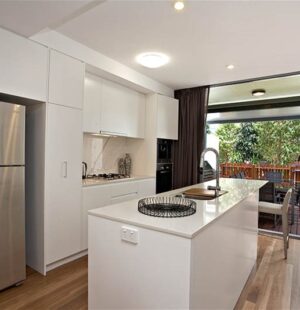 Enter on level 1 through your own private courtyard. Beautiful timber floors throughout the ground level and a designer kitchen including quality European appliances and granite bench tops. At the other end is a second courtyard which opens up to your very own communal garden to enjoy. Don’t worry about the gardening – at Terrace Row this is taken care of for you.