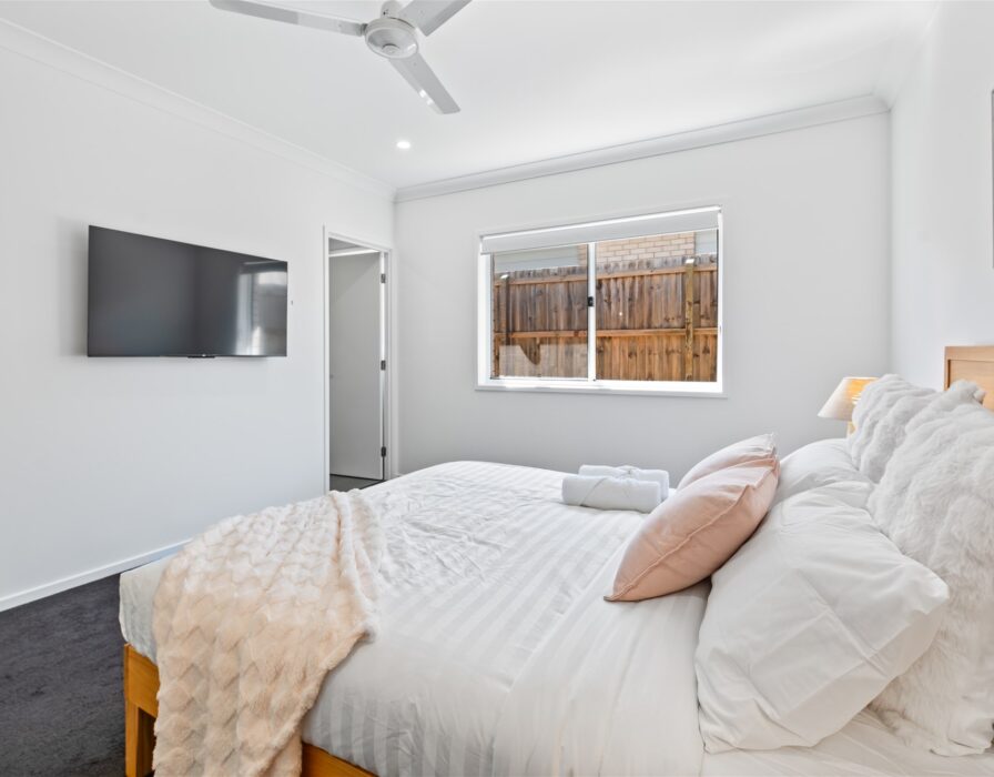 The modern and well-equipped kitchen is a chef’s delight with its granite countertops, ample storage space, and top-of-the-line appliances. The master bedroom features a sleek ensuite, providing you with your own private oasis. All bedrooms in this house come with built-in wardrobes, providing plenty of storage space.