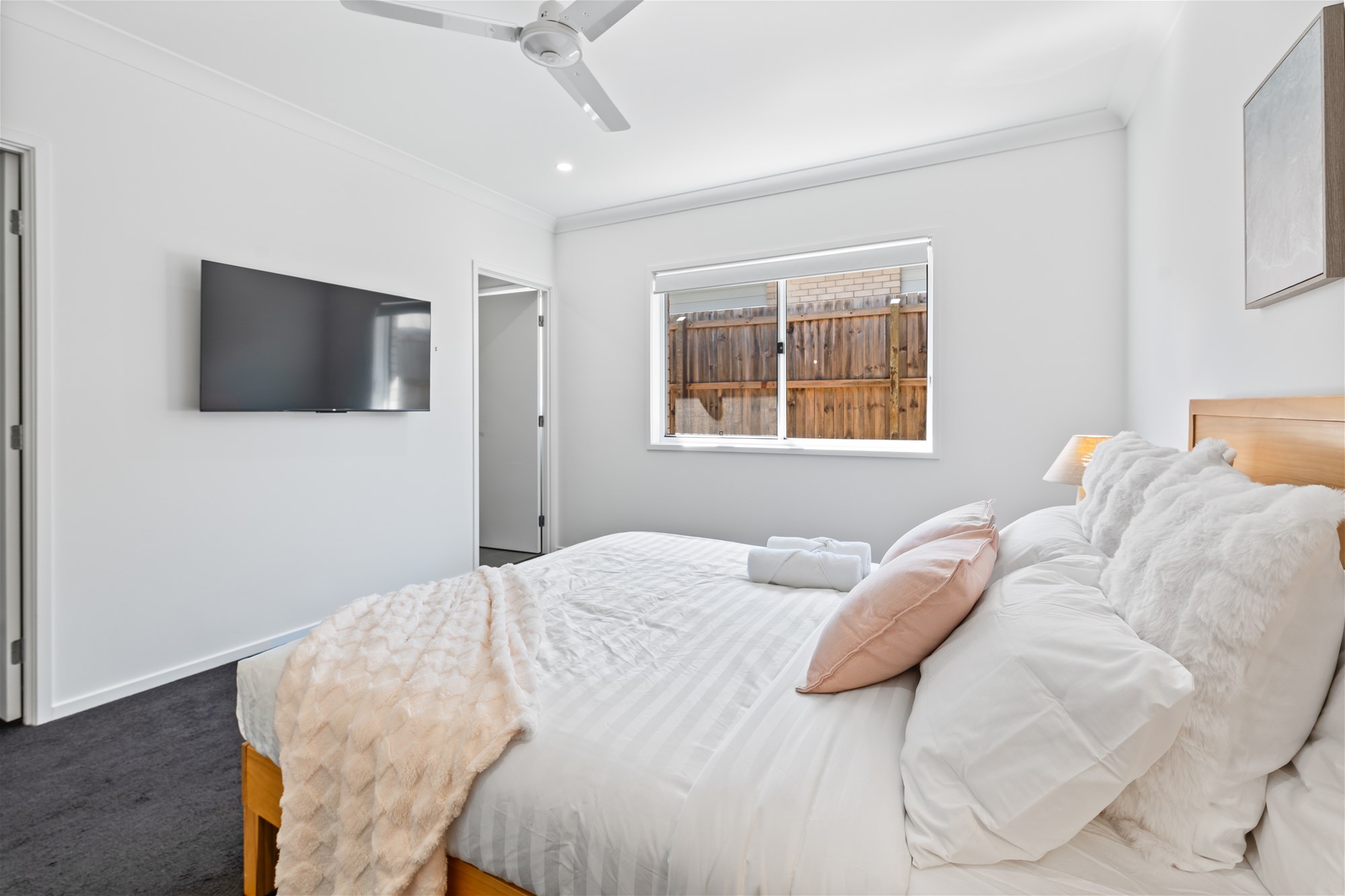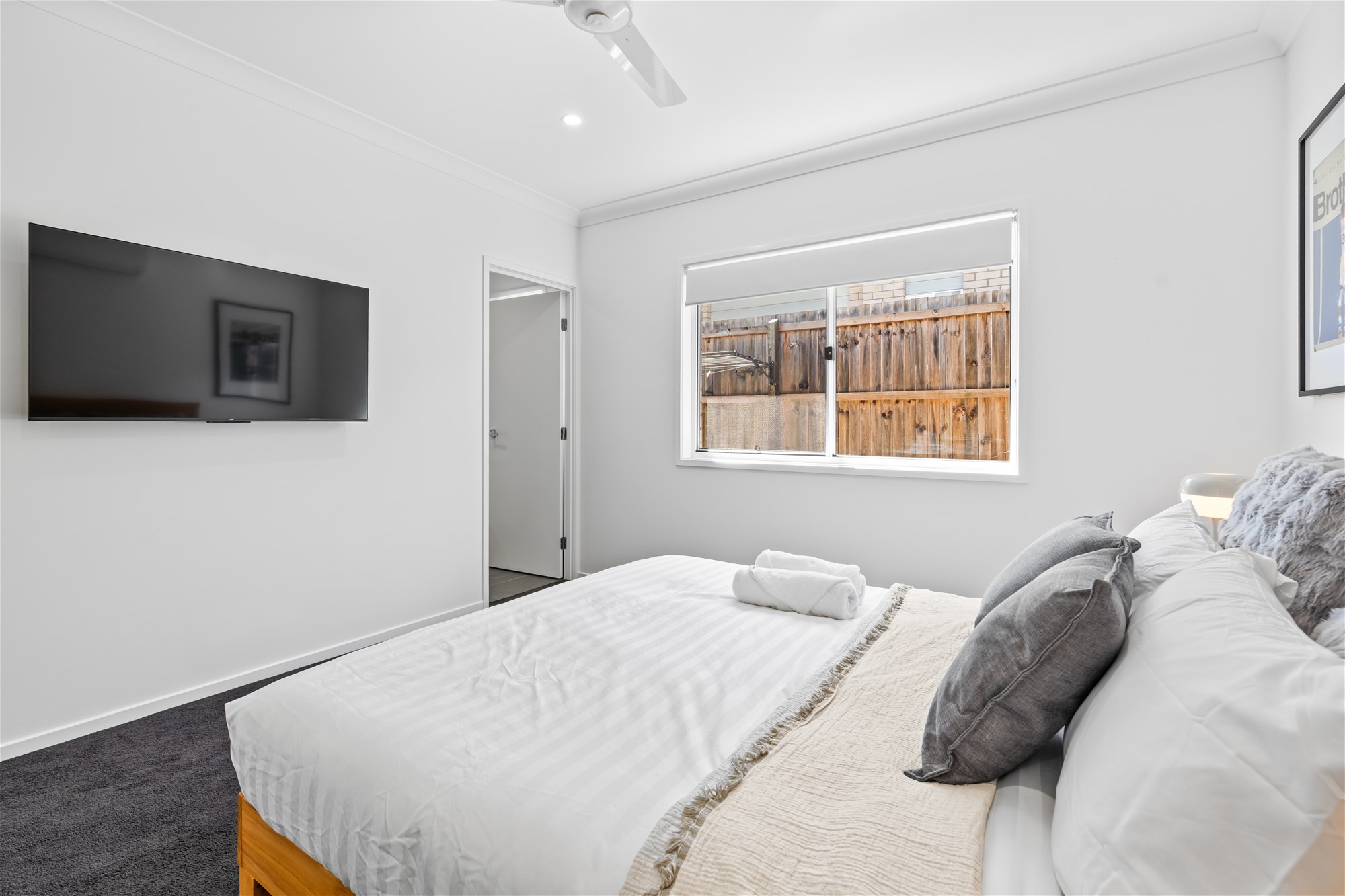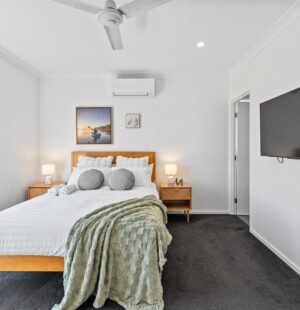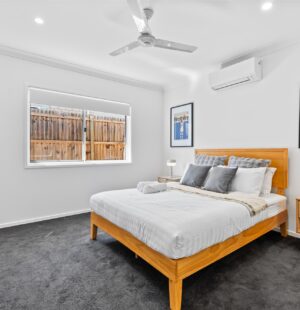 The modern and well-equipped kitchen is a chef’s delight with its granite countertops, ample storage space, and top-of-the-line appliances. The master bedroom features a sleek ensuite, providing you with your own private oasis. All bedrooms in this house come with built-in wardrobes, providing plenty of storage space.