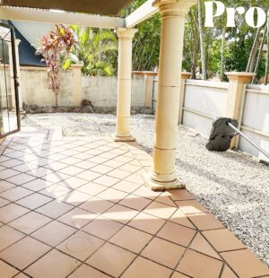 – Professional low maintenance back yard offer plenty space for BBQ and family party.