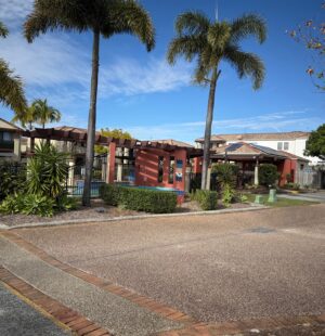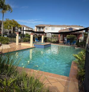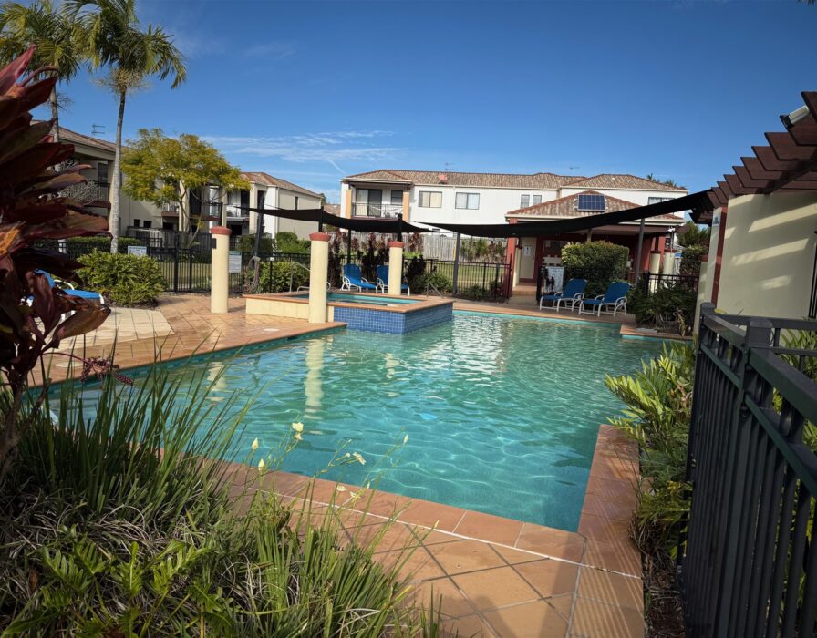 3 bedrooms townhouse with a dining area, a practical kitchen with storage. The master bedroom includes a private ensuite; airconditioning and at centre of the complex. Walking distance to the best GC state primary school and high school; shops, cafes, and bus statetion are all within easy reach.