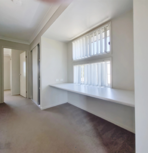 The bedrooms in this townhouse offer plenty of room for a growing family, and the two bathrooms provide convenience for busy mornings. The master bedroom is a tranquil retreat, with a walk-in closet and an en-suite bathroom for added luxury. One of the other bedrooms has been converted into a home office, perfect for those who work from home or need a quiet study space.