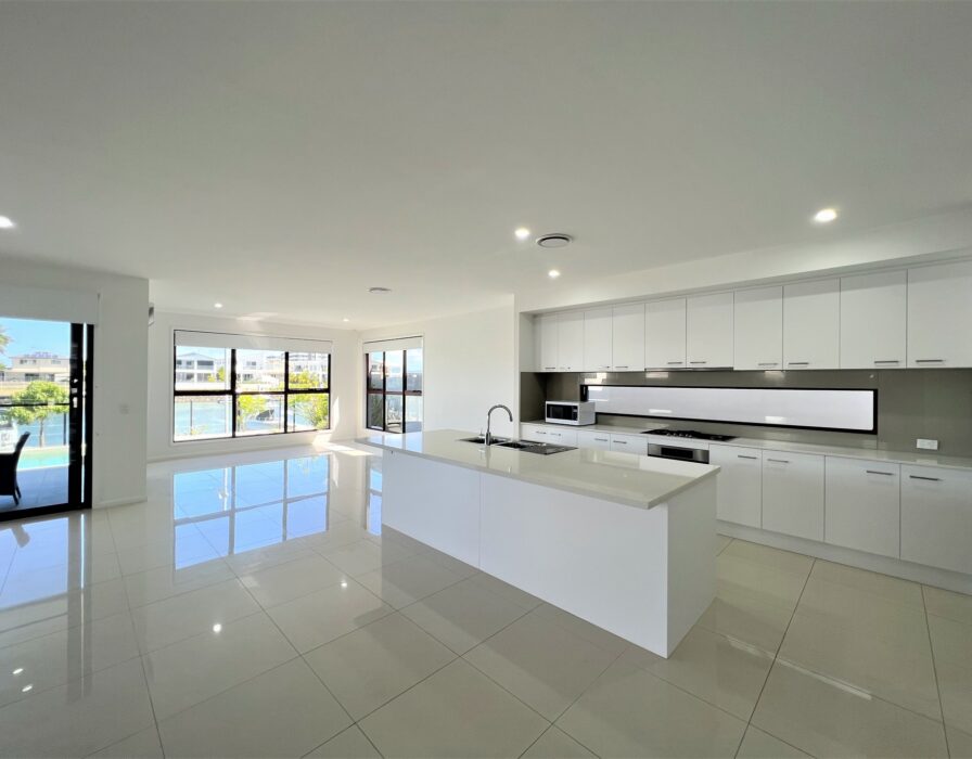 Beautiful spacious fully waterfront family home in the Park Cove Estate, this thoughtfully designed 5 bedroom + study/multi-purpose room home offers a comfortable layout with high ceilings and open plan living and dining areas throughout. multiple living areas and a beautiful outlook with stunning water views. This property is centrally located near Hope Island Marketplace, your choice of restaurants and cafes, medical facilities and specialty shops and within is easy access to schools, public transport and the M1.