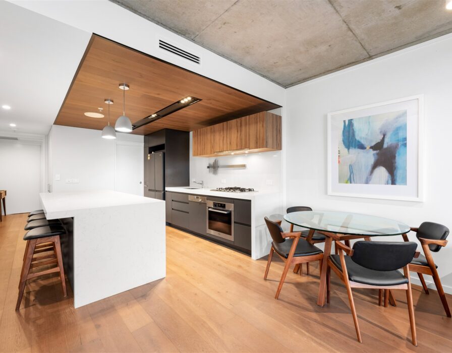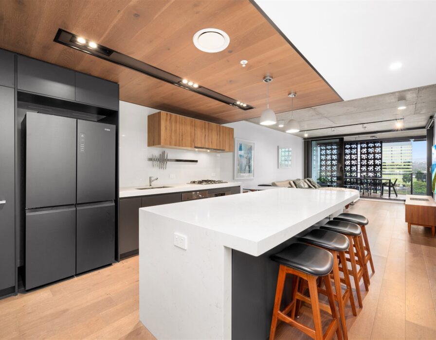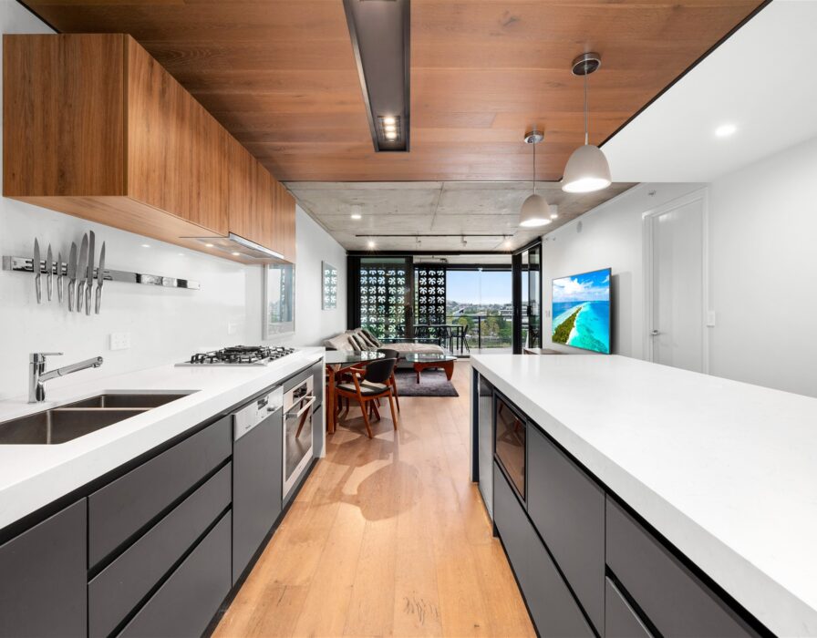 The open plan living areas feature European Oak Timber floors and stunning 2.7m high concrete ceilings which is ideal for entertaining.