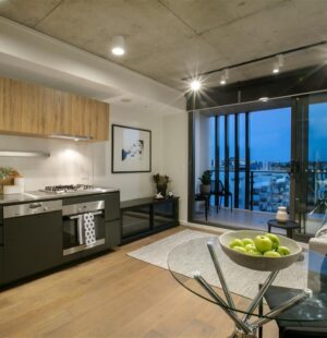 This unfurnished modern apartment offers fully ducted air-conditioning, sizable balcony and urban chic design. Vida sits on a quiet tree-lined street and enjoys river views from the balcony.