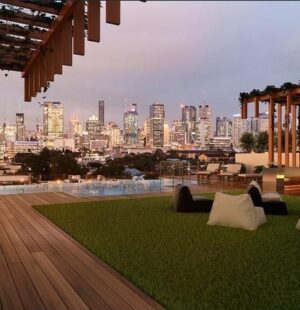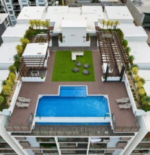* Breathtaking Resident’s roof top pool and entertaining space with panoramic views